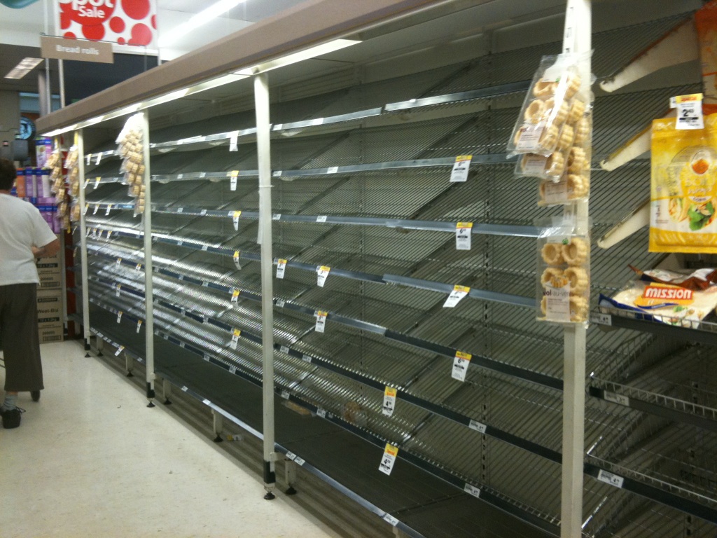 @lexiphanic That’s my local done: “@daddyiwantapony: Coles at New Farm shelves are empty #qldfloods twitpic.com/3p0i1t”