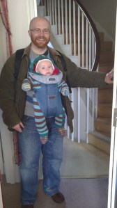 It meets my need for getting some good basic exercise, Samson is happy wrapped up in his furry super-suit, and my wife gets an hour to herself to do with as she pleases! It meets everyone’s needs and I get some more bonding time with Samson. If he’s awake I talk or sing to him (I don’t look any more crazy than your average blue-tooth headset user!) and if he’s asleep then at least he’s still in my energy field.