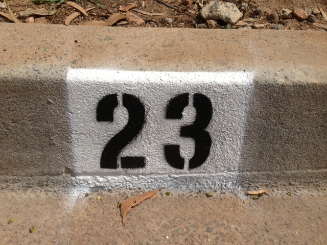 He was a local man, he said, who had lost his job a year or two back. He had seen a need in the community and was walking door to door offering to take care of it in return for the community doing a little to take care of him. House numbers painted on the curb he said. Always a problem for ambulances, taxis and friends to find the right house at night! Would I be interested in him taking care of that for me today?